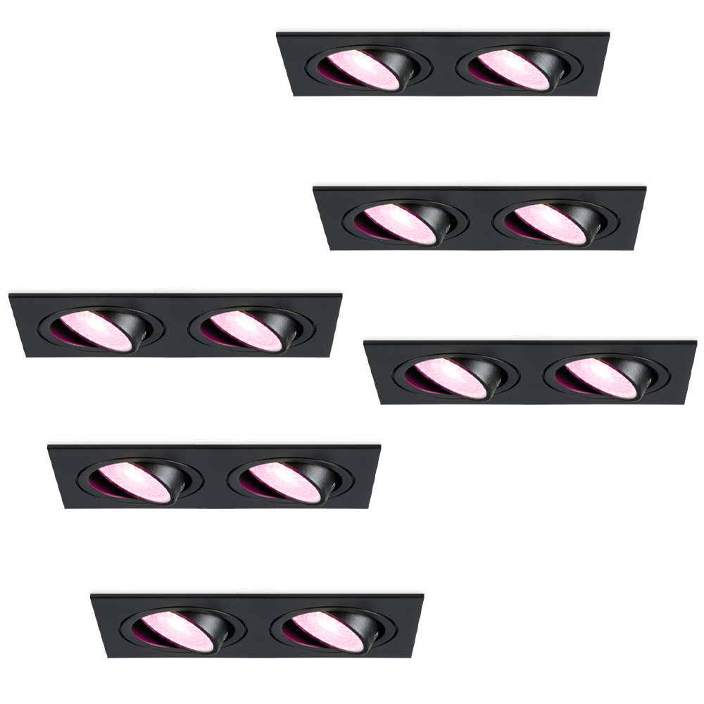 6er Set Mallorca - LED Einbaustrahler - Schwenkbar - 11 Watt 690 Lumen - Wifi + Bluetooth - RGBWW - Doppelt - GU10 - Google Home, Amazon Alexa und Siri - Rechteckig - IP20 für Innenbereich - Schwarz