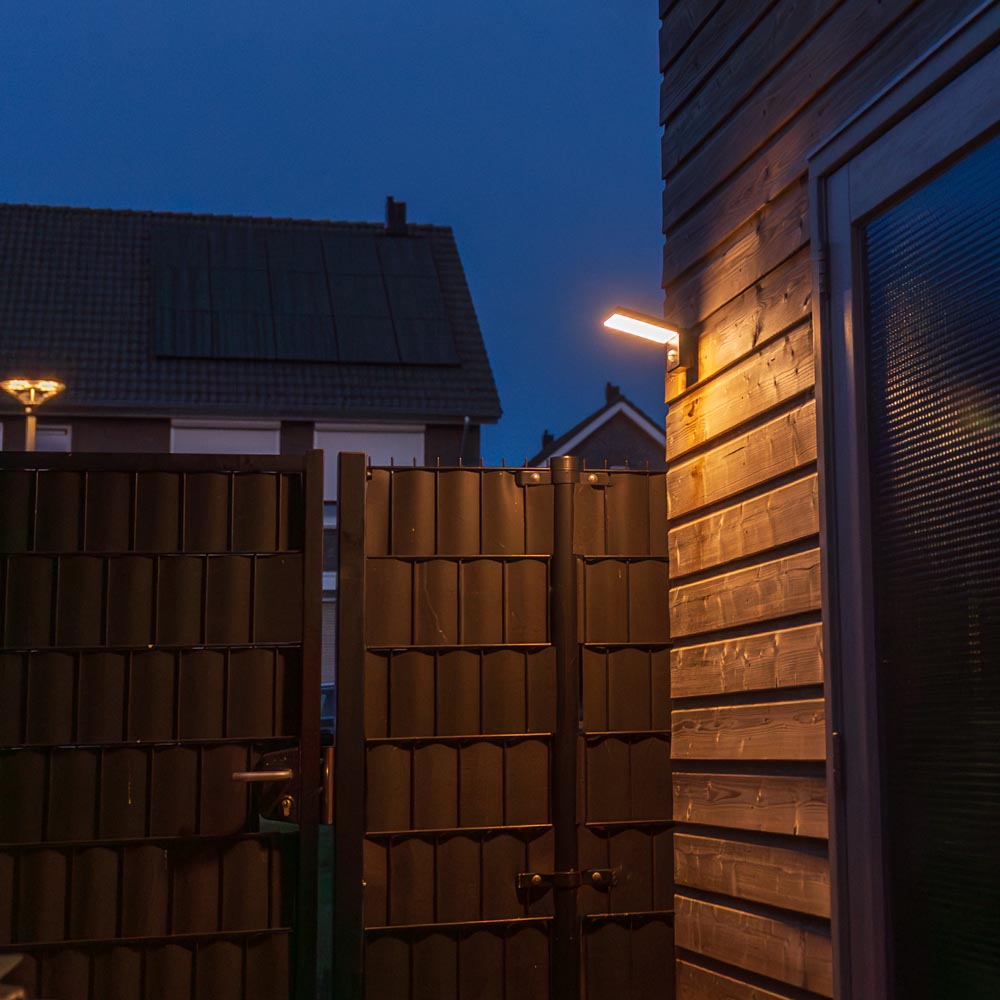 Diese Wandleuchte hat sowohl einen Bewegungsmelder als auch einen Dämmerungsschalter. So geht die Lampe nur an, wenn du Licht brauchst.