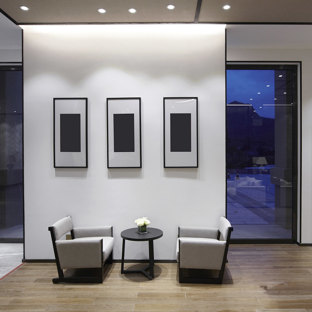 Die Einbaustrahler sind schwenkbar und eignen sich für die Montage in einer Nische oder um Lichtakzente zu setzen. Ideal, um ein Gemälde, eine Pflanze oder eine Skulptur hervorzuheben.