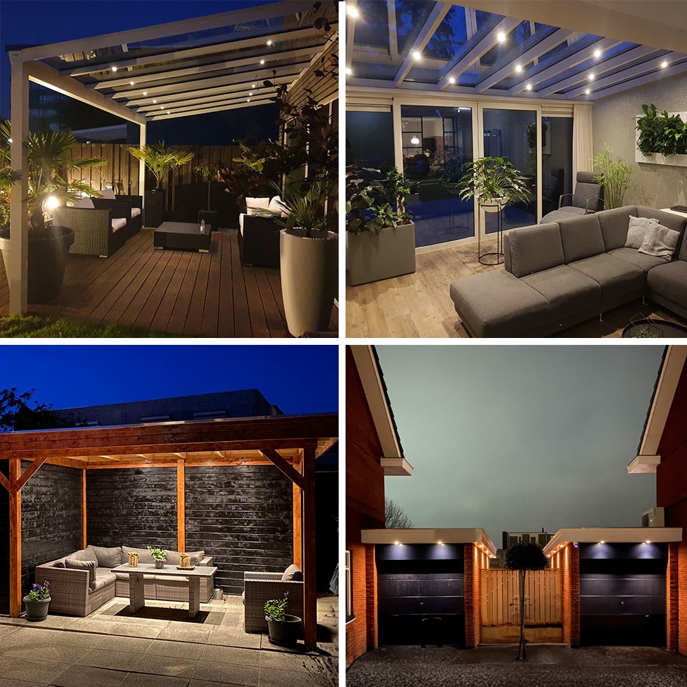 Die Veranda-Downlights sind durch die IP-Klassifizierung vor Feuchtigkeit und/oder Staub geschützt. Die Installation unter einem Vordach, in einem Gartenhaus, auf einer Veranda oder in einem Badezimmer ist daher möglich.
