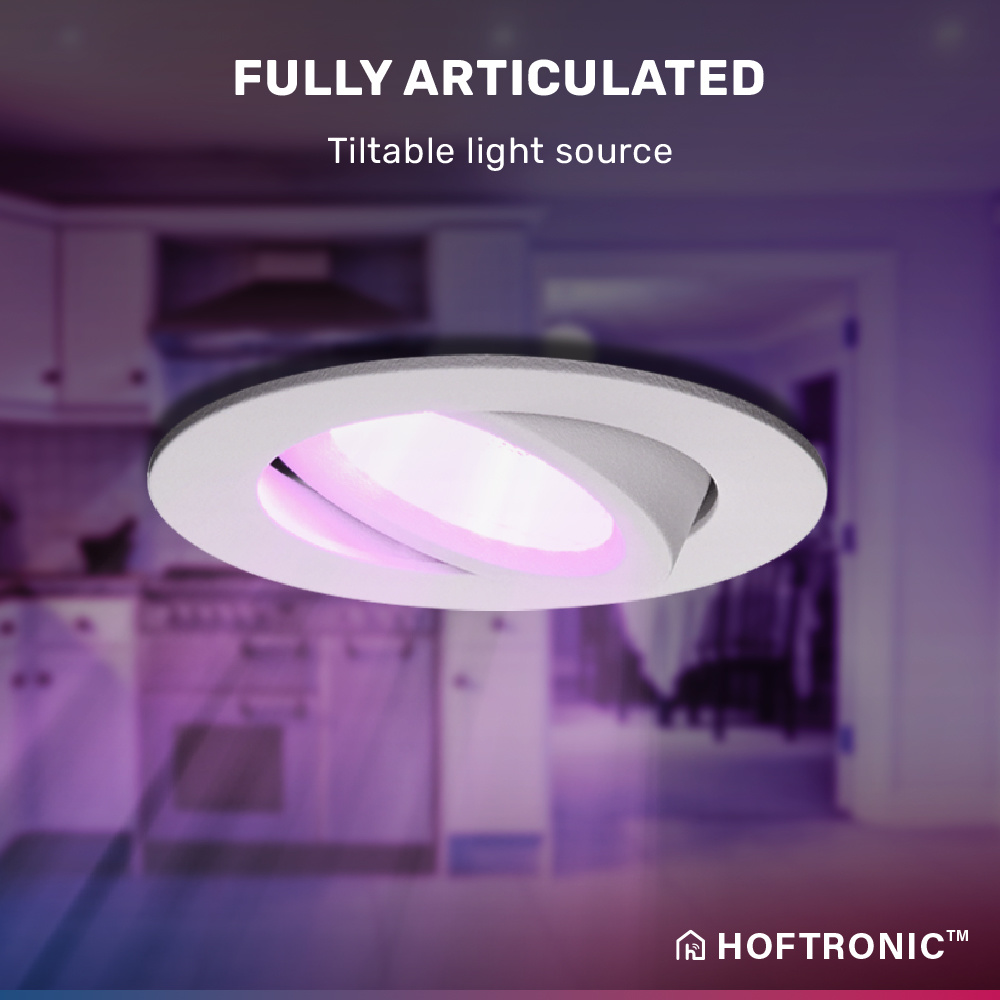 Verbinden Sie den Einbaustrahler mit der HOFTRONIC-App für Geofencing, Sprachsteuerung, Gruppierung, Wettersteuerung, 16,5M Farben, Biorhythmus und Dimmen.