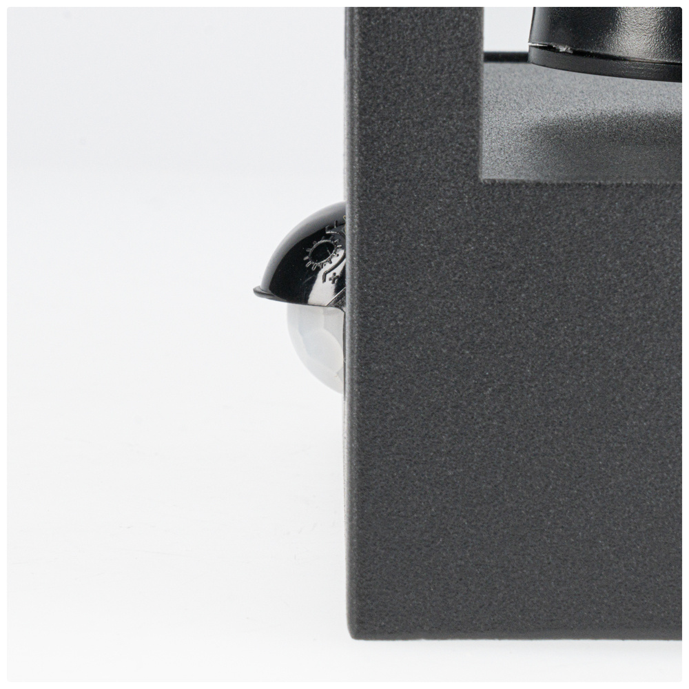 Diese Stella Wandleuchte hat einen Bewegungssensor und einen Dämmerungsschalter, wodurch sie sich sehr gut neben der Haustür oder an der Hausfassade eignet.