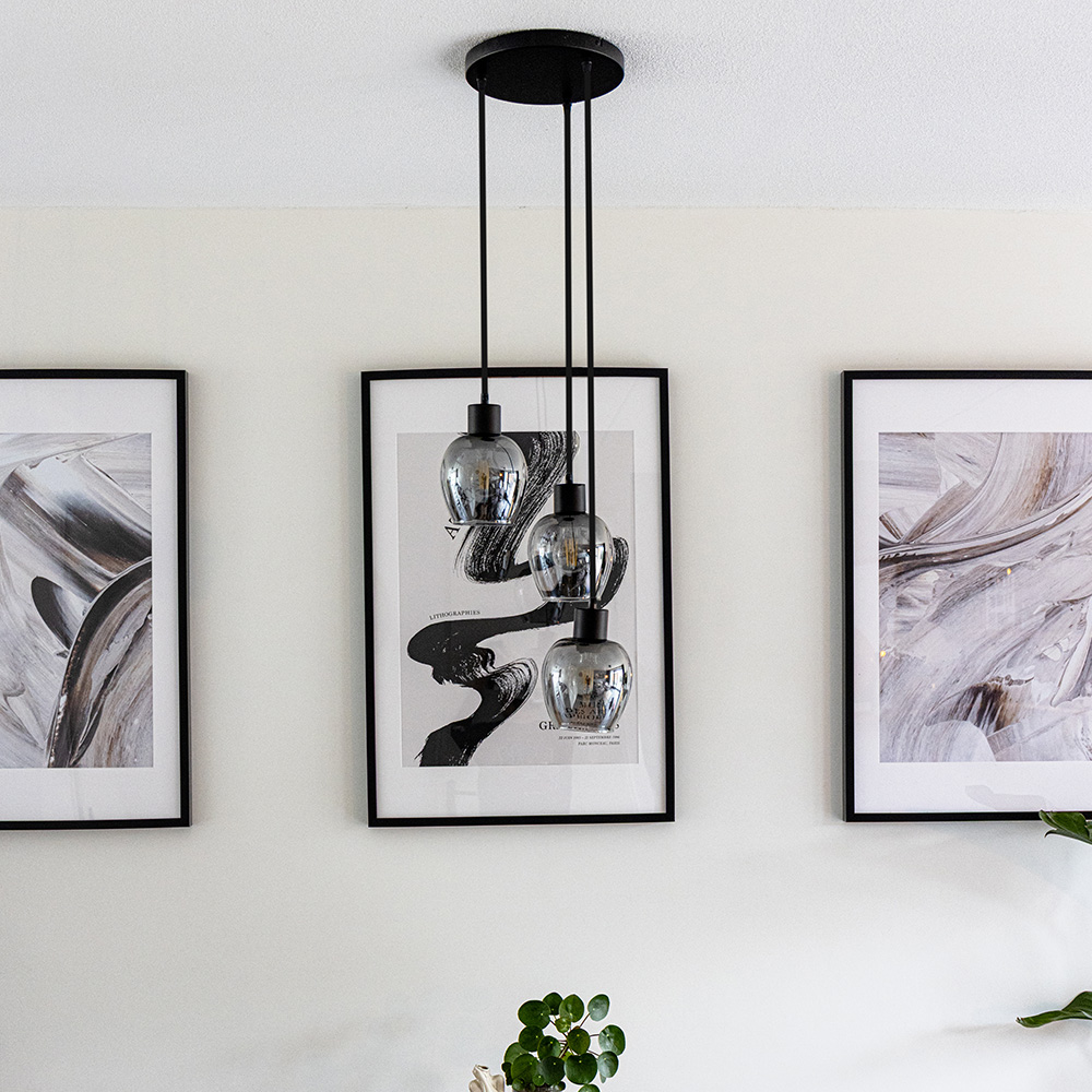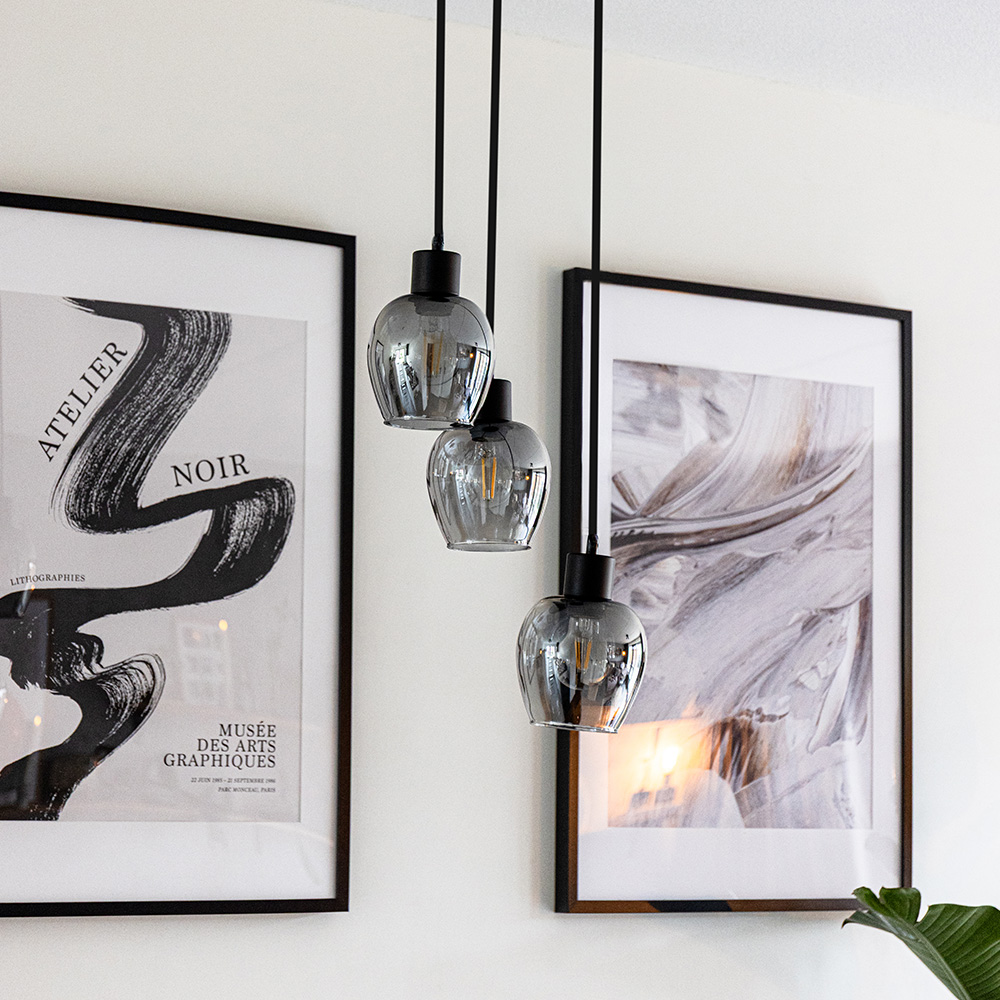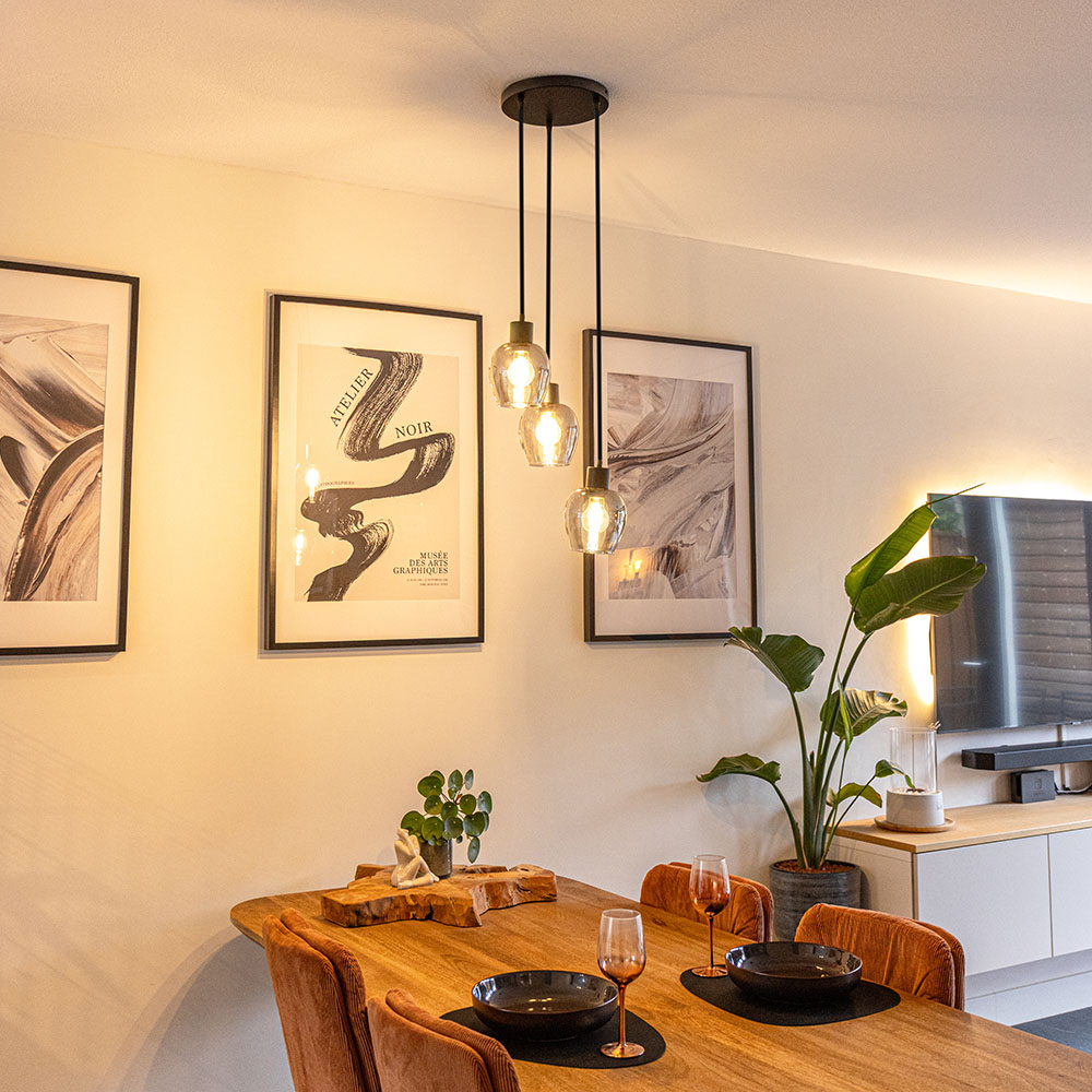 Zora - LED Pendelleuchte Rauchglas - 3-flammig - E27 - Schwarz