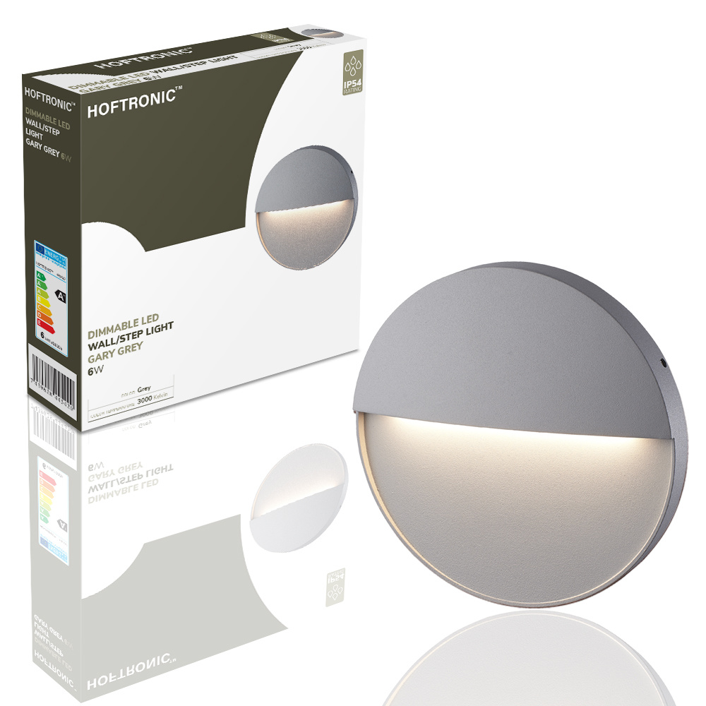 4x Gary LED-væglampe - Dæmpbar - Grå - 6W 280lm - 3000K - IP54 - Inkl. lysdæmper