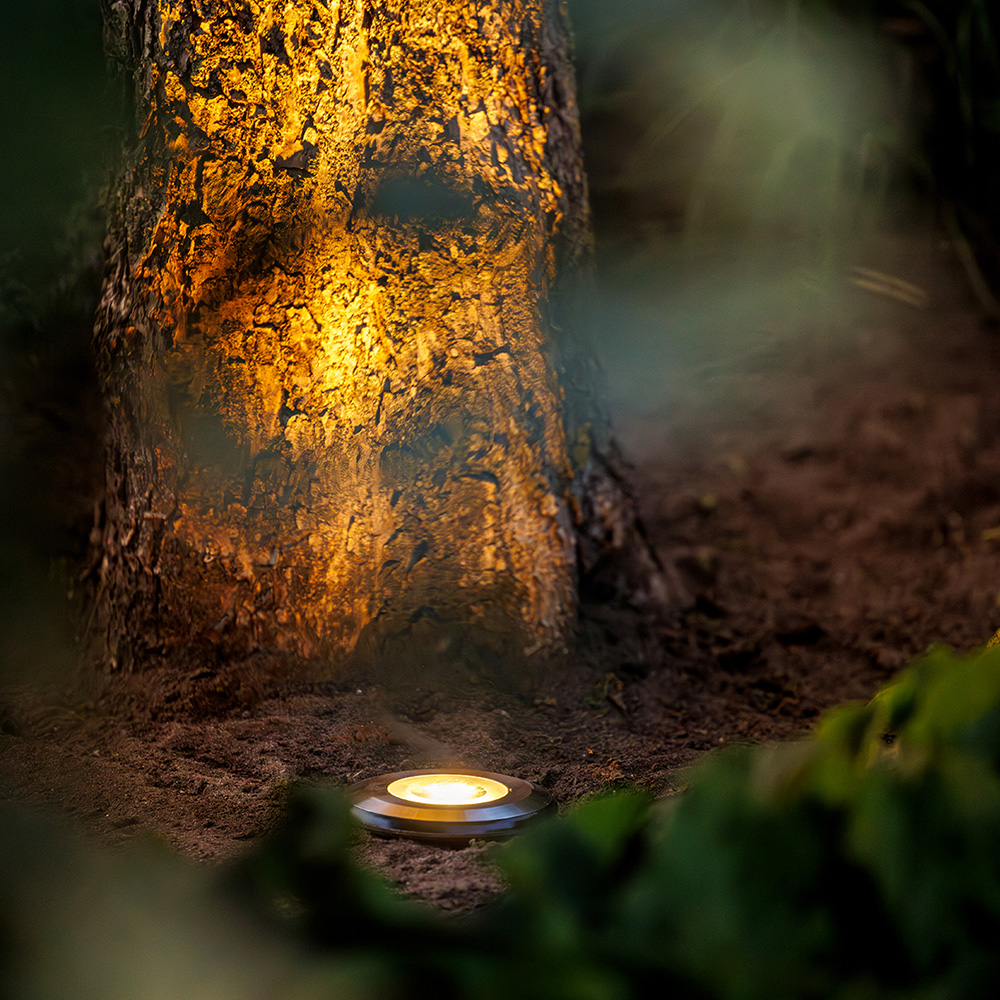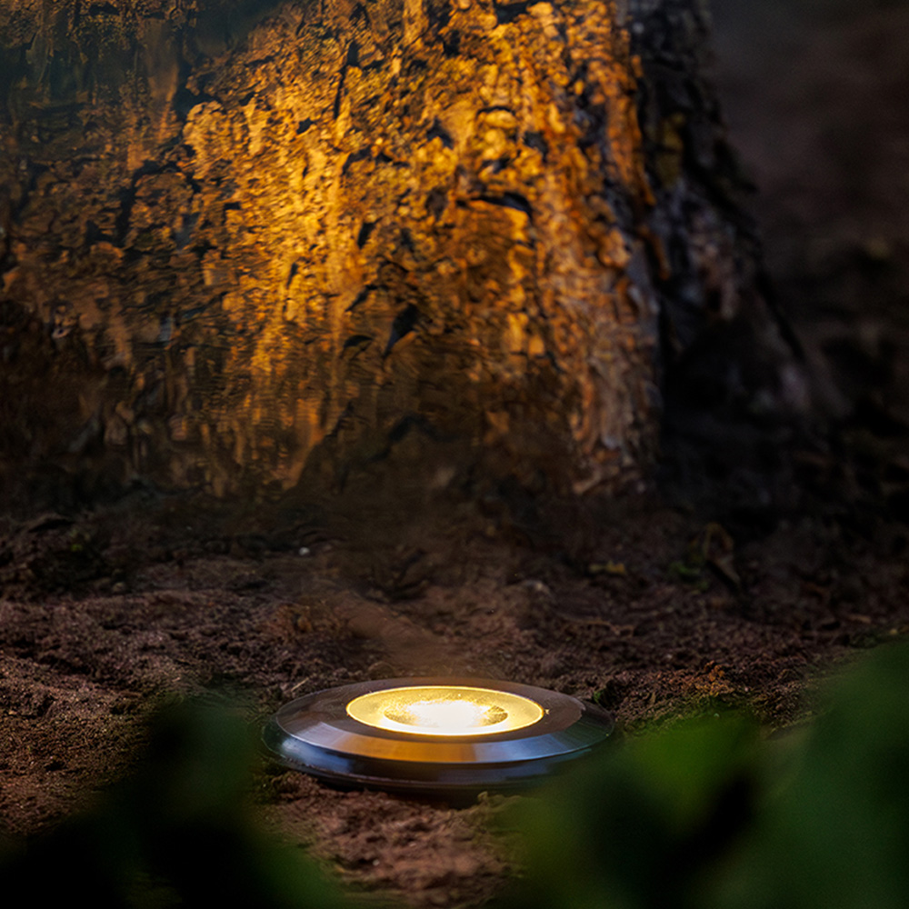 Lightpro Agate – 12V LED jordspot er en kraftfuld og stilfuld uplighter, der både sikrer orienterings- og accentbelysning i din have. Med sin stærke lysudsendelse oplyser denne spot nemt indkørsler, havestier eller terrasser. Takket være den strømlinede rustfri stålringe er armaturet diskret afsluttet og bemærkes næsten ikke om dagen, hvilket gør, at fokus forbliver fuldstændigt på din have.
