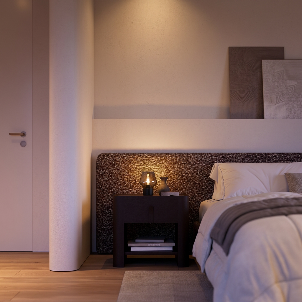 Lampen er kompakt, så den ser perfekt ud på natborde, sideborde eller skriveborde, og den er nem at flytte.