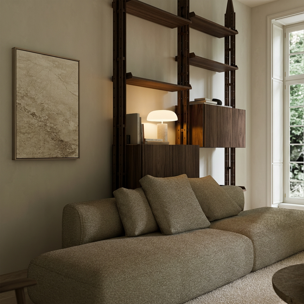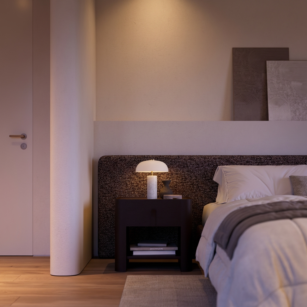Det, der gør Ivelon ekstra speciel, er, at lampeskærmen kan flyttes, så du subtilt kan justere lysfordelingen og lade lyset spille med den atmosfære, det skal tilføre rummet. Denne fleksibilitet giver dig frihed til at gøre lyset mindre direkte eller mere markant.