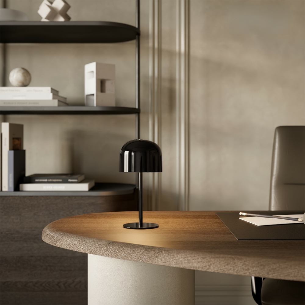 Lampen er kompakt, så den ser perfekt ud på natborde, sideborde eller skriveborde, og den er nem at flytte.