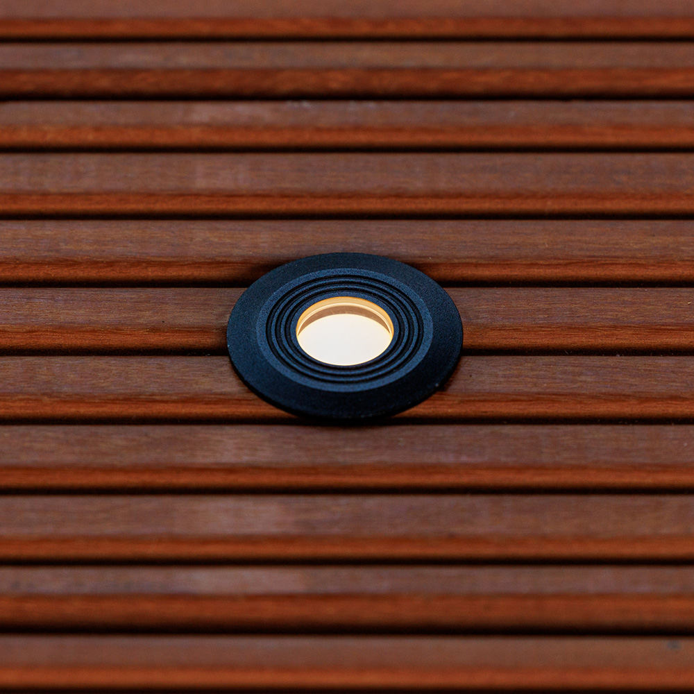 Onyx 30 LED jordspot - 0,5 watt - 1 lumen - 2700K varm hvid - 12V - Havespot - IP67 vandtæt - Terrassespot - Rund - Antracit