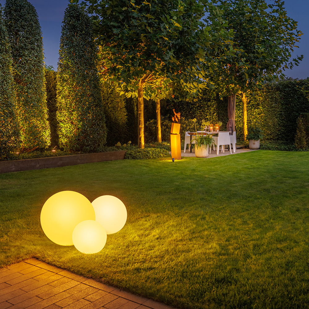- Stemningsbelysning til store haver, terrasser og verandaer.