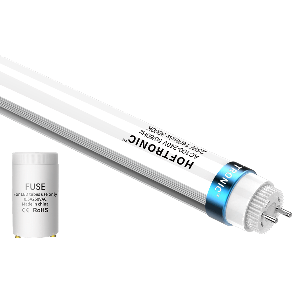 The LED Tube consumes 25 watts to produce 3500 lumens of light. This is an efficiency of 140 lumens per watt and allows this LED Tube to replace a 90 watt fluorescent light. The LED Tube shines a warm white light of 3000 degrees Kelvin. This is a warm, yellow light color and replaces the old 830 light color 1-to-1. You can replace your current T8 (G13) lights 1-to-1 with this LED version. For this you use the included LED starter.