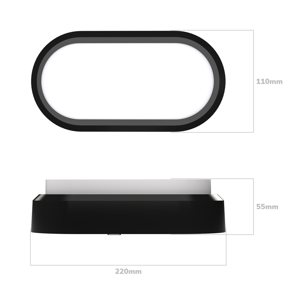2x C-Series - LED Ceiling Light Black Oval - Wall Light - IP54 - 18W 1830lm - 6500K