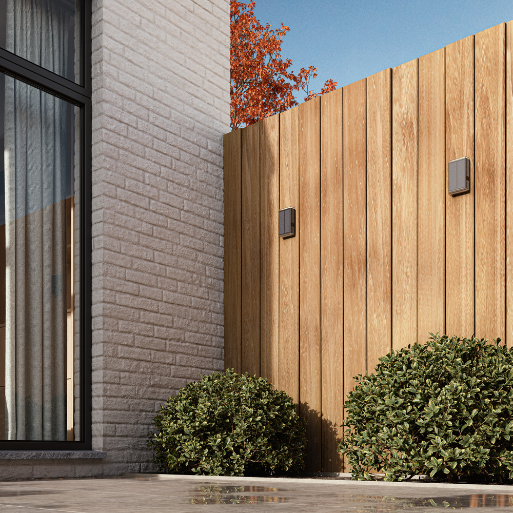 This solar wall light shines light up and down. This creates two beautiful beams of light on your facade, fence or shed. Stylish and modern.
