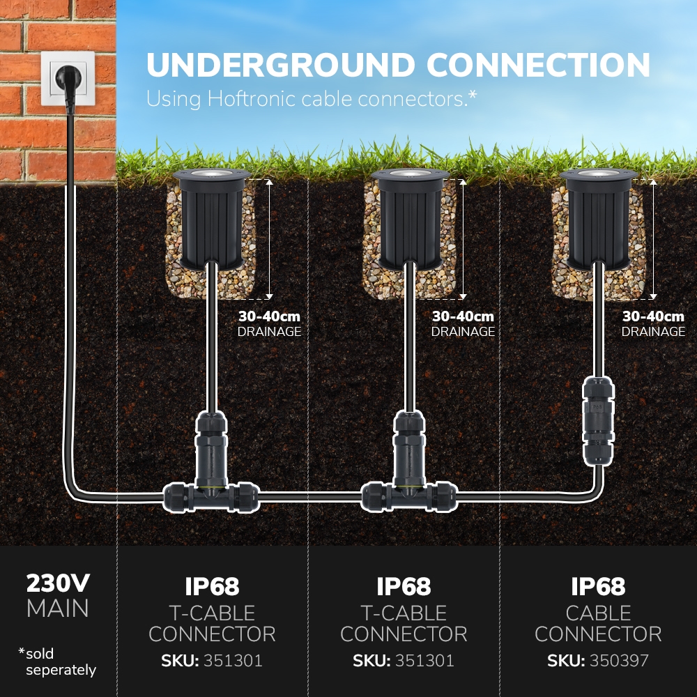 The IP67 protection class protects the in-ground lights from failure due to rain, sleet, snow and cold. This allows you to enjoy your in-ground lights for years without any problems.