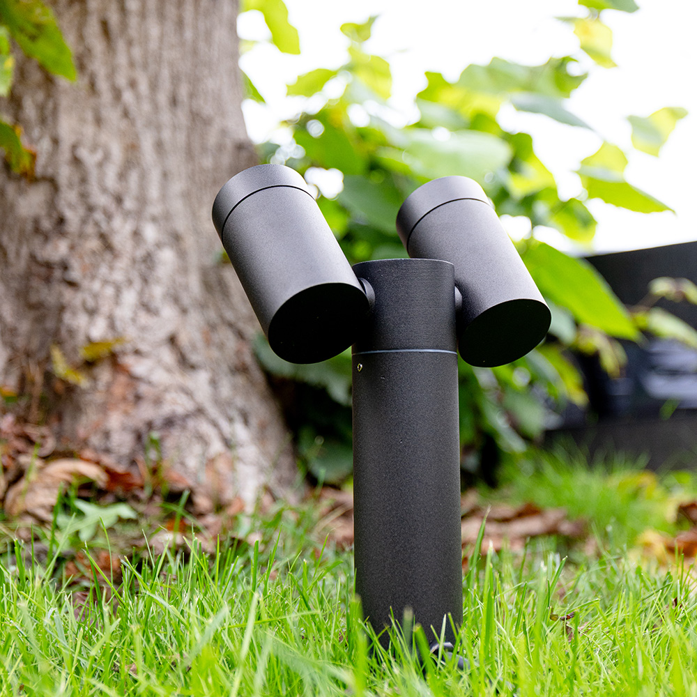The two spots of this garden spike lights are independently tiltable up to 317 degrees. This allows you, for example, to use 1 spotlight to illuminate your garden path and one spotlight to illuminate a tree. The Pinero shines an atmospheric neutral white light of 4000 degrees Kelvin. The pinero consumes only 8 Watts, producing 690 Lumens of light. The garden spike light has a beam angle of 38 degrees. Because of this narrow beam, applying light accents is very easy.