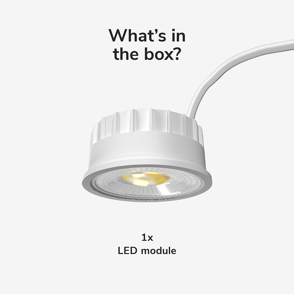 This LED module is the ideal choice for those looking for a modern and versatile LED replacement. Thanks to the built-in CCT switch, you can easily set the desired light colour: choose between warm white (2700K), neutral white (4000K), or cool white (6000K). This way, you always create the right atmosphere, whether it’s cosy lighting in the living room or functional light in the bathroom. The module is also dimmable, allowing you to perfectly adjust the light intensity to the moment.