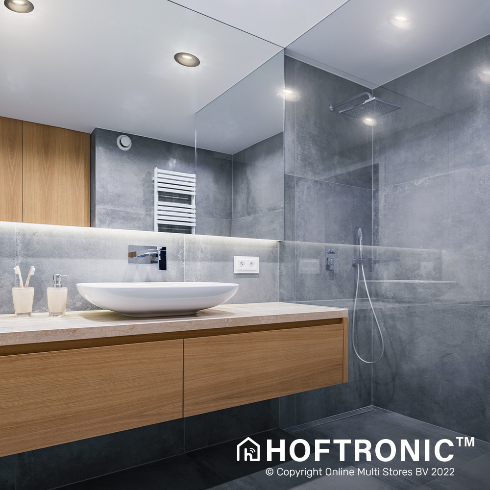 Thanks to the high IP rating, the recessed downlights are protected against moisture and dust. Suitable for bathrooms and porches, you can even mount them above the bath or shower.