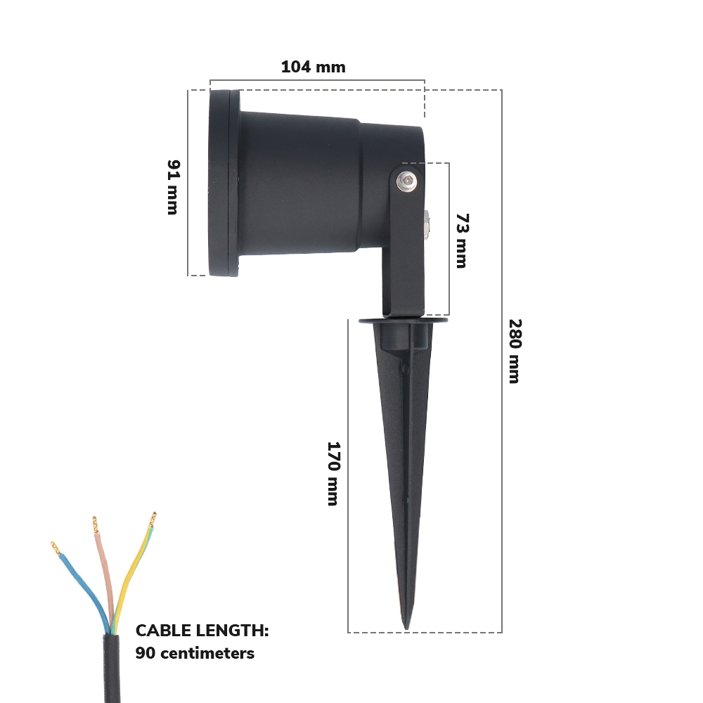 This LED garden spike lights uses an exchangeable GU10 light source (GU10 fitting). This is included and is easy to replace in case of failure.