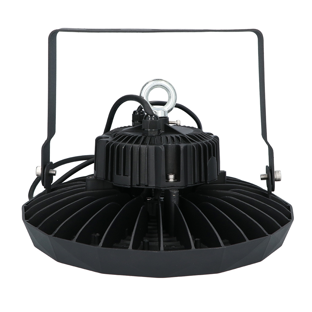 The black, sturdy mounting bracket matches the high bay well and is barely noticeable, ideal for industrial spaces with lots of black and dark accents.