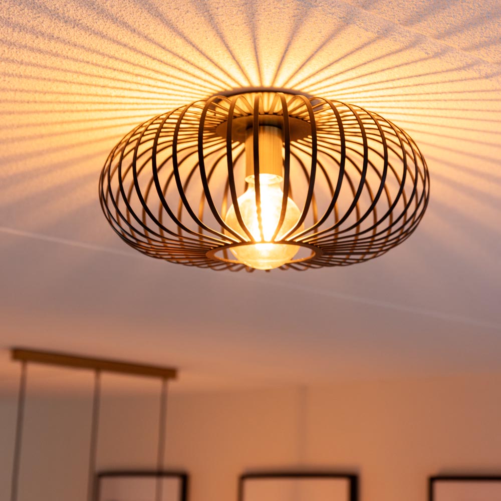 This LED ceiling light is equipped with an E27 fitting. This allows you to determine the beam angle, light output and light colour of the ceiling light yourself.