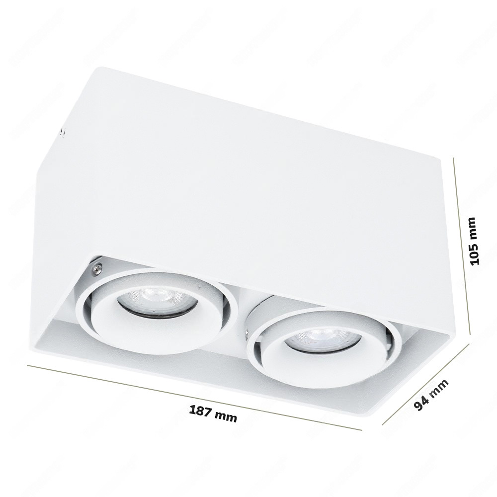 Esto LED ceiling spotlight square - 8 watts 690 lumens - 2 lights - Tiltable - Dimmable - 2700K warm white - IP20 - White - Surface mounted - Indoor - Replaceable cover ring