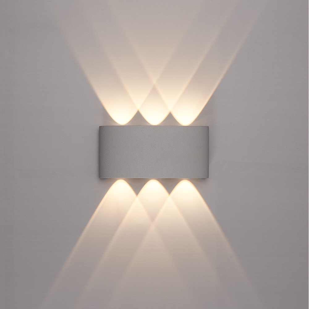 Tulsa LED Wall Light Grey - 6 Watts 630 lumens - IP54 Waterproof - 3000K Warm White - Dimmable - Indoor and Outdoor - Up & Down Light - Modern