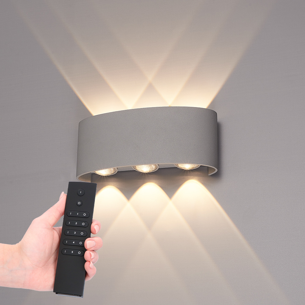 2x Tulsa LED Wall Light - Dimmable - Grey - 6 Watts 280 lumens - 3000K warm white - IP54 waterproof - Up & Down light - Incl. dimmer with remote control