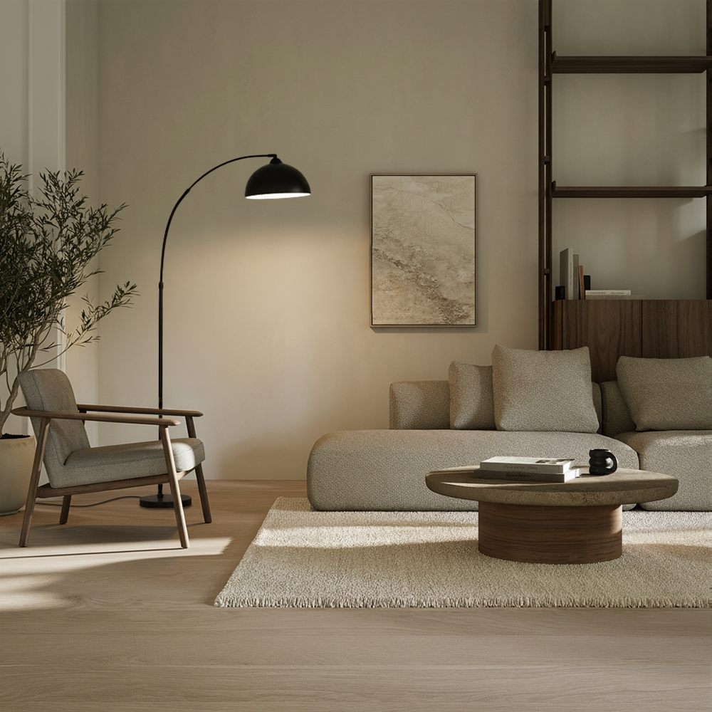 The Karian floor lamp fits effortlessly into a modern interior, an industrially decorated space or a minimalist living style. Place it next to the sofa as a reading lamp, in a study where focus is needed or in a bedroom where bright light is desired without losing the atmosphere of the room.