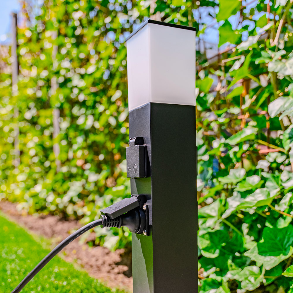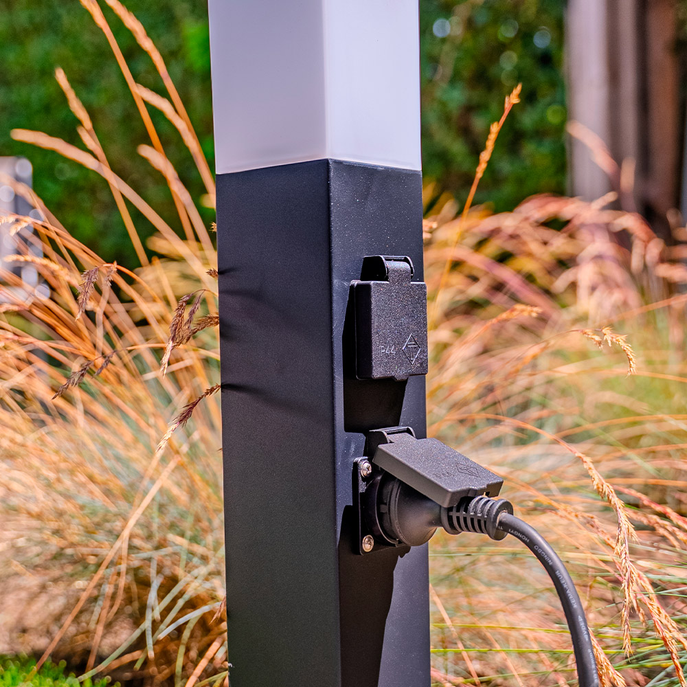 Thanks to the hinged covers, all sockets are IP44 waterproof. Make sure you have a well-drained surface so that you don't get any water collecting under the outdoor socket post.