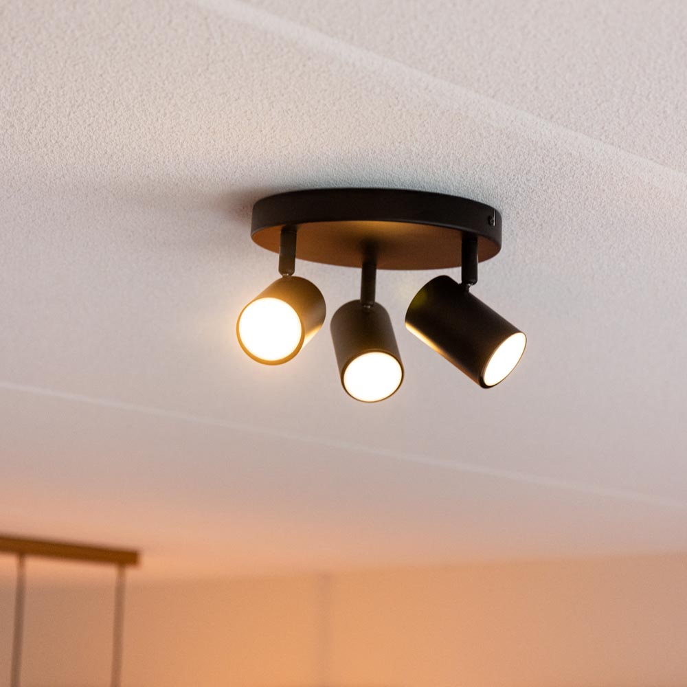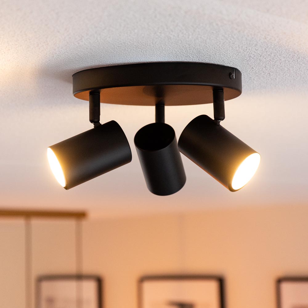 Lark - LED Ceiling Lamp - 3 spots - GU10 Fitting - Tiltable & Rotatable - Black - Round