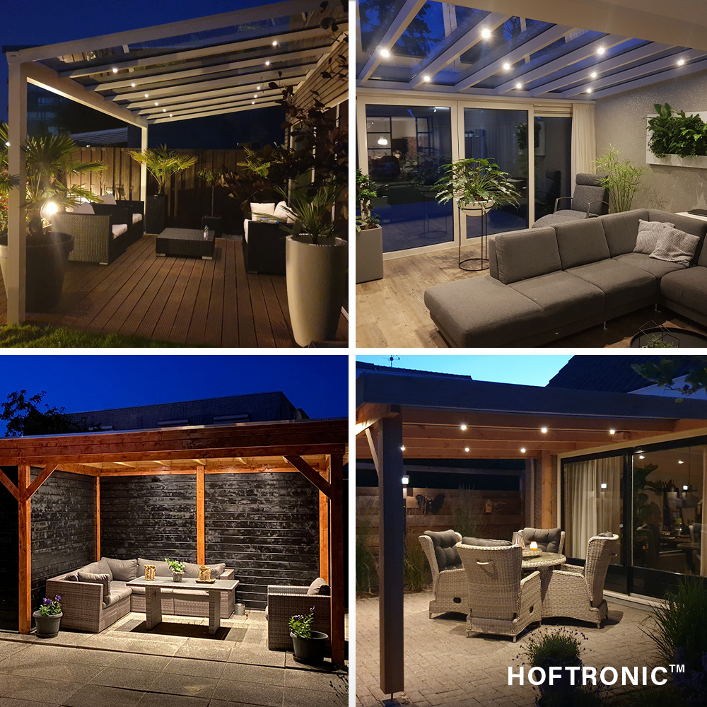 These patio lights are made from maintenance free aluminium. This material is lightweight, does not attract dirt and dust and is easy to clean.