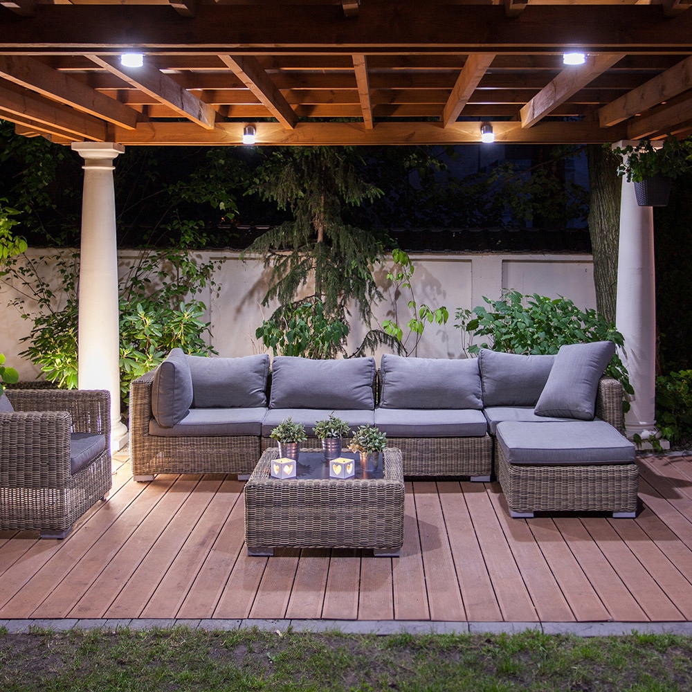 The wall lamp features a GU10 fitting. This variant comes with a deluxe, dimmable, glass GU10 spotlight. This spot shines a neutral white light of 4000 degrees Kelvin. The ideal light color for atmospheric lighting of garden and terrace. Thanks to the handy screw system in the wall light, you can replace the GU10 without having to remove the wall light from the wall. The high IP44 protection class ensures that the wall light will not fail due to moisture, dust, sleet and snow.