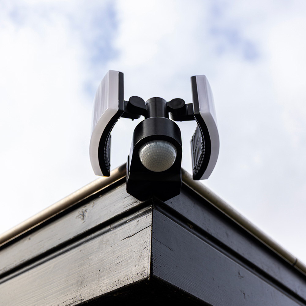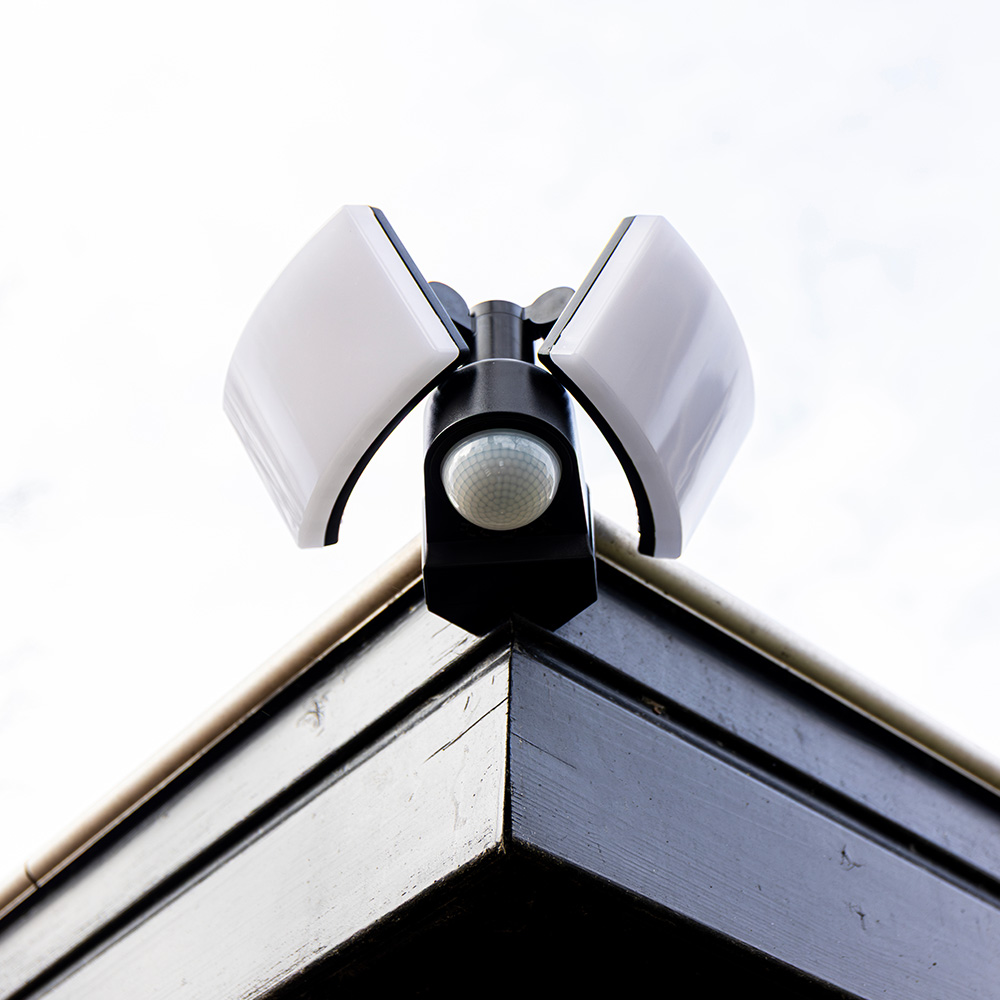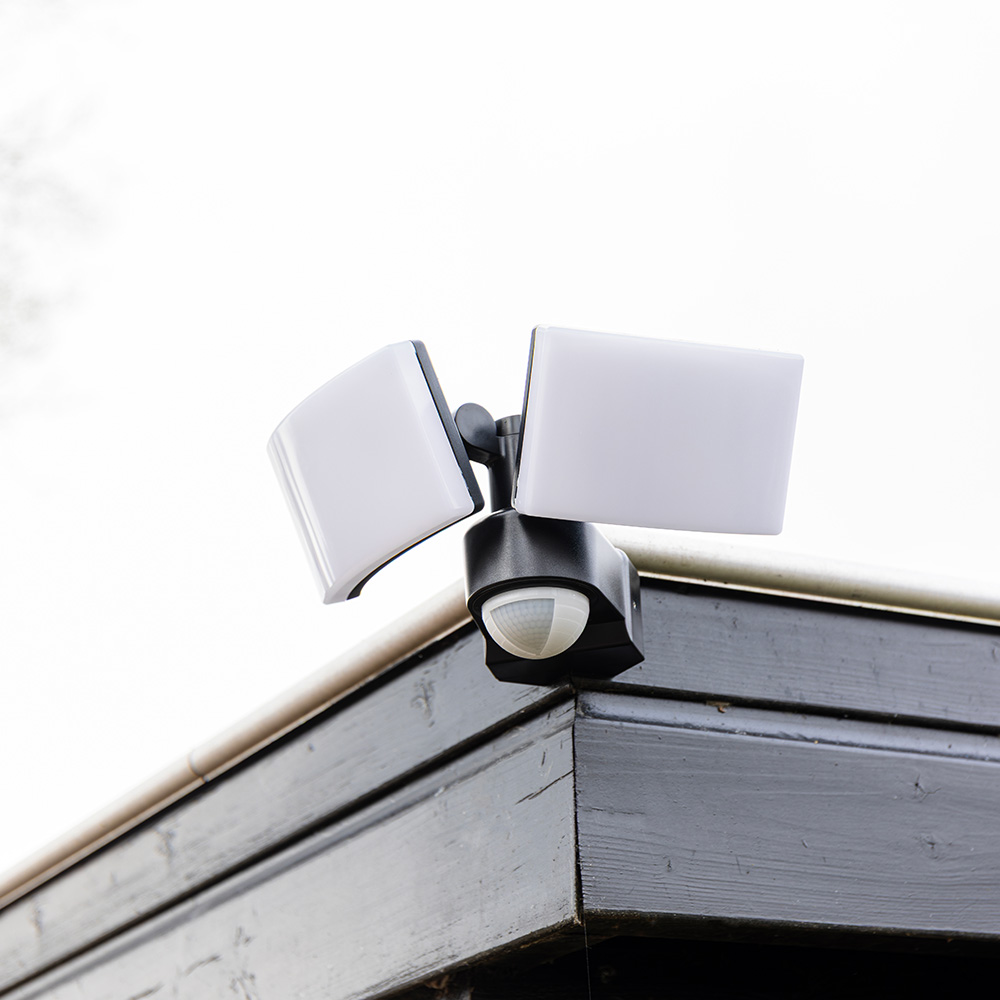 This outdoor lamp features two tiltable spotlights. This allows you to easily light certain places in the garden. The wall lamp also features both a motion sensor and a twilight switch. This turns the wall lamp on only when you need light. Both the motion sensor and the twilight switch are fully adjustable. The wall lamp is made of aluminum and polycarbonate. As a result, the wall lamp does not rust or discolor from sun or moisture.