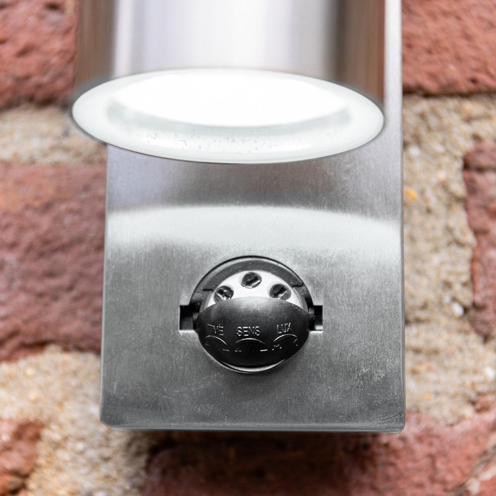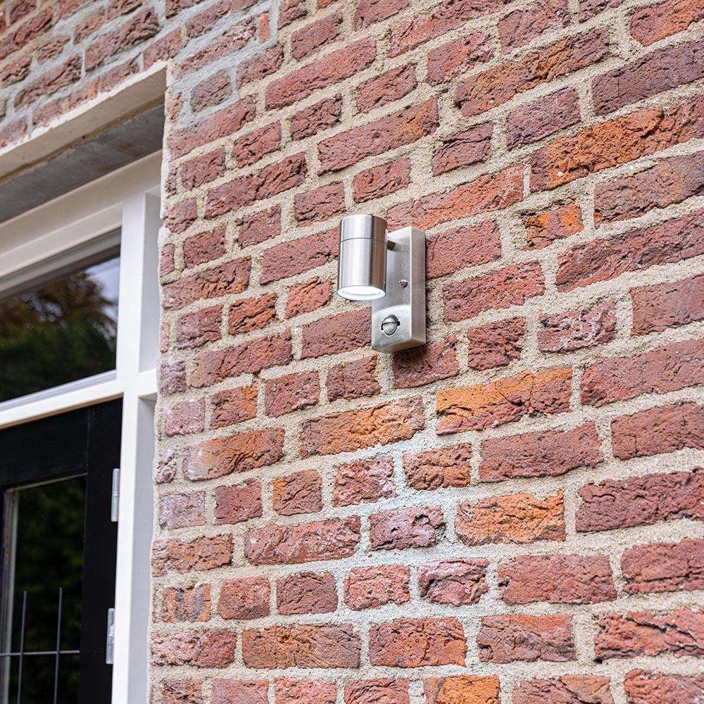Mason wall light - GU10 4 Watts 345 Lumens - 6500K daylight white - Motion sensor and twilight switch - IP44 splashproof - Downlight for indoor and outdoor use - stainless steel - Motion sensor light