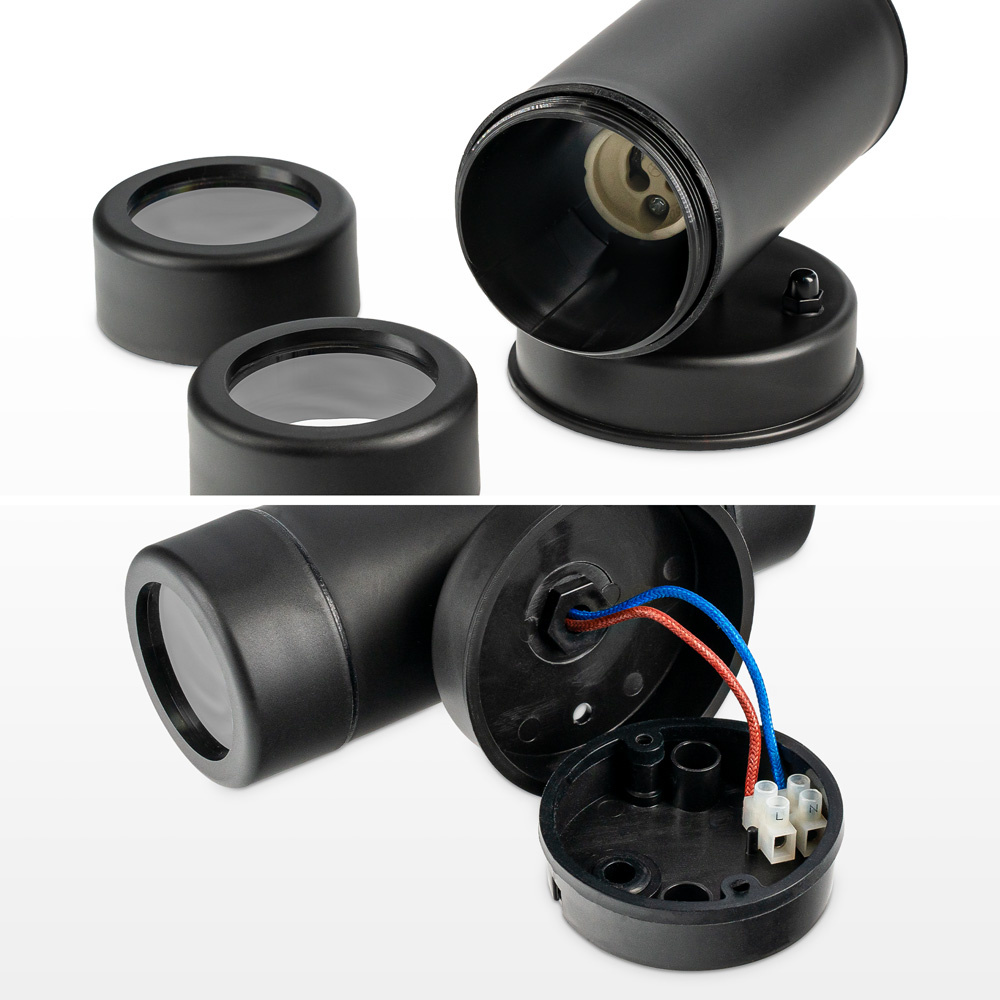 The wall light is finished with a black moisture and UV resistant AKZO-Nobel powder coating. This ensures that there will be no discolouration from sunlight or flaking from moisture.