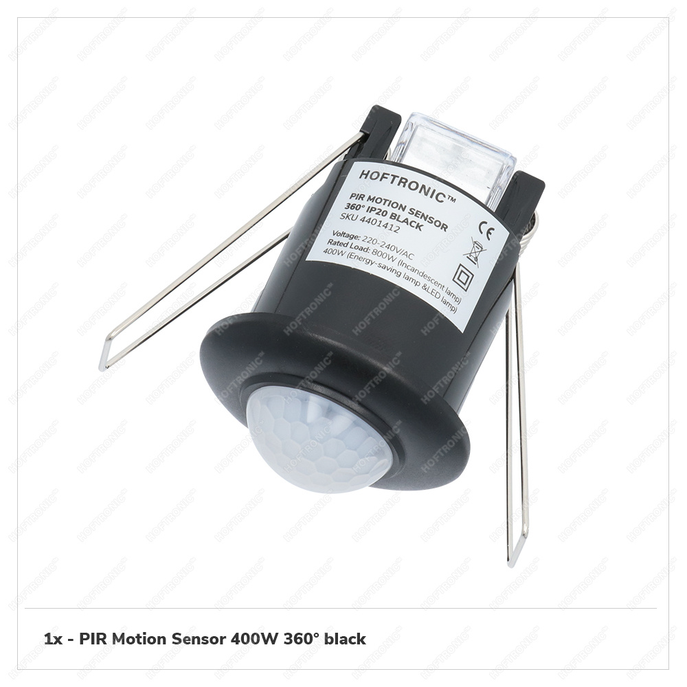 This black recessed PIR motion detector with twilight switch is easy to install in the ceiling. You can connect up to 300W of LED lighting to the sensor. The detector has a detection angle of 360 degrees and a detection distance of 6 meters. This allows the sensor to detect all movements that take place in a room. Ideal for offices and garages. Both the twilight switch and motion sensor can be fully adjusted to your requirements.