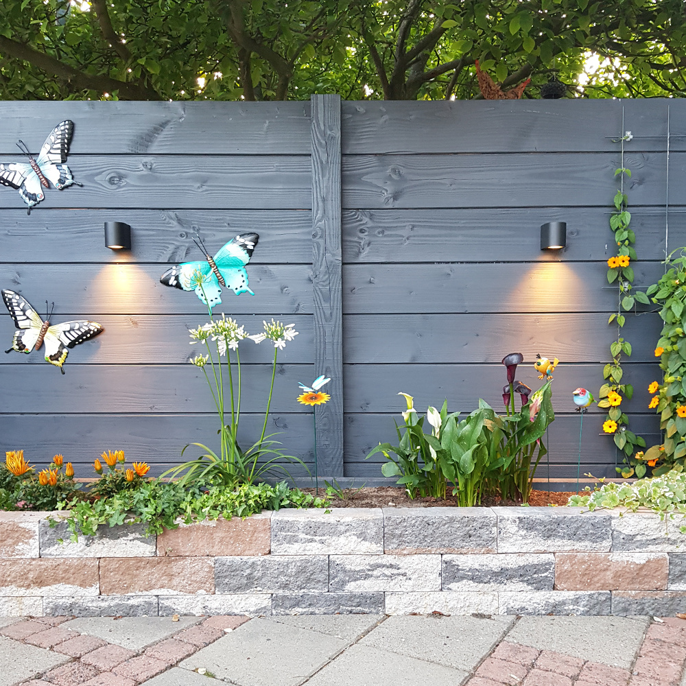 This is because the lamps are IP64 Waterproof and made of maintenance-free aluminium. As the lamps only shine their light downwards, they are very suitable for illuminating the fence and facade.