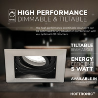 3x Durham square LED recessed downlights - 4W 345lm 6500K GU10 - Dimmable Tiltable