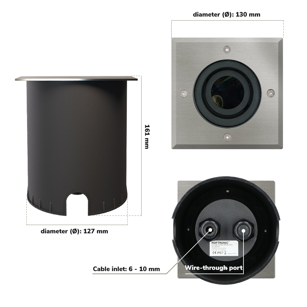 The IP67 protection class protects the in-ground lights from failure due to rain, sleet, snow and cold. This allows you to enjoy your in-ground lights for years without any problems.