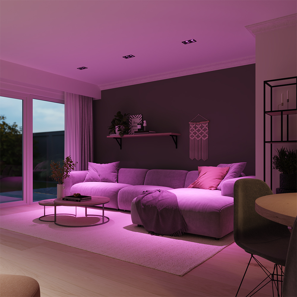 Connect the recessed downlights to the HOFTRONIC app for geofencing, voice control, grouping, weather control, 16.5M colours, biorhythm and dimming.