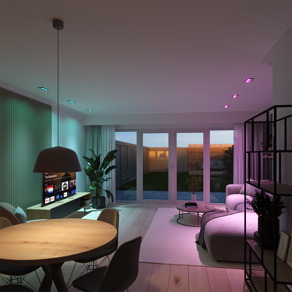 Choose from 16.5 million colours (RGBWW). From atmospheric warm light to colder, more energetic light, to coloured light: the possibilities are endless.