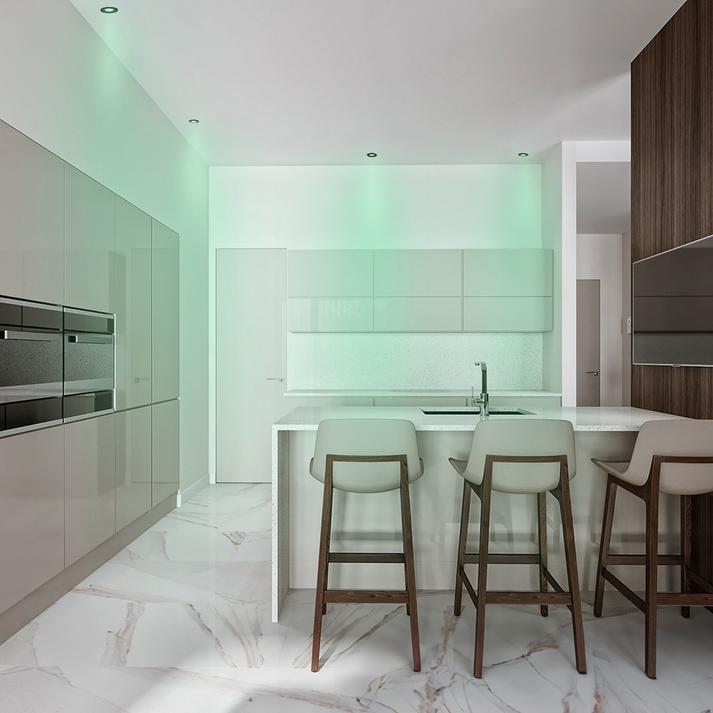 Connect the recessed downlights to the HOFTRONIC app for geofencing, voice control, grouping, weather control, 16.5M colours, biorhythm and dimming.