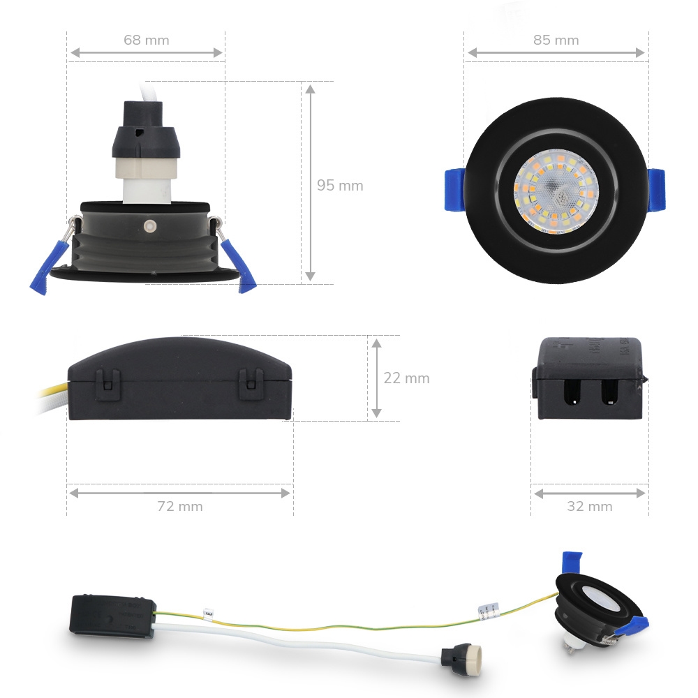 LED recessed downlights with exchangeable smart GU10 light source. In case of failure, you only need to replace the light source. The smart LED light source has 50,000 burning hours, which equates to ca. 20 years..