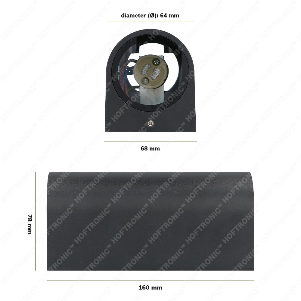 The Douglas wall light black is a smart wall light with an Up Down light. It is made of maintenance-free aluminum finished with a moisture-resistant and UV-resistant AKZO-Nobel powder coating. This eliminates rust or defects caused by moisture. The included light source is has a GU10 socket, is dimmable, consumes 11W and has a luminous intensity of 690 lumens. The lamp can be set to as many as 16.5 million colors. You do this easily via the color wheel in the Hoftronic Smart App.