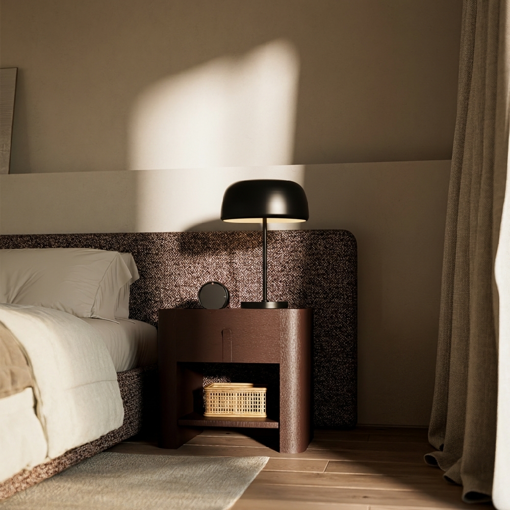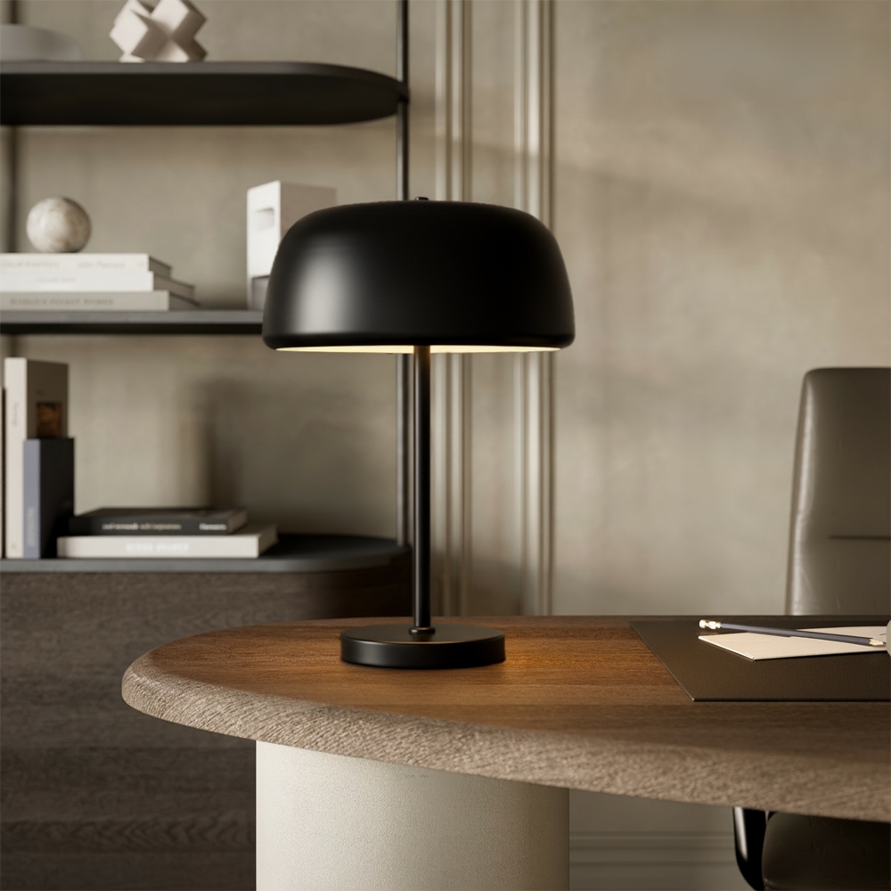 This mushroom lamp fits well in a modern or minimalist interior, but can also bring tranquillity to a retro or eclectic space where different shapes and materials converge. The Voryn nero s is a table lamp that doesn’t make an overt statement, but rather remains captivating through its simplicity and proportions.