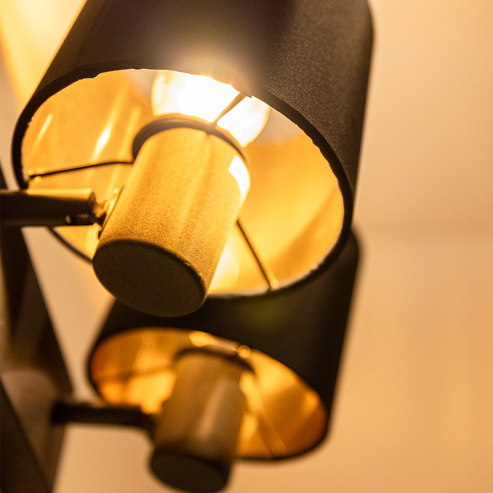 Ce plafonnier Jimmy est doté de deux spots textiles. Ces spots sont entièrement rotatifs et réglables, ce qui vous permet de créer facilement les plus beaux accents lumineux dans votre maison. Ce plafonnier est largement utilisé dans les couloirs, les salons et les chambres à coucher. Le plafonnier Jimmy est équipé de raccords E14. Cela permet de changer facilement la source lumineuse du Jimmy. L'intérieur des abat-jour en textile est doré.