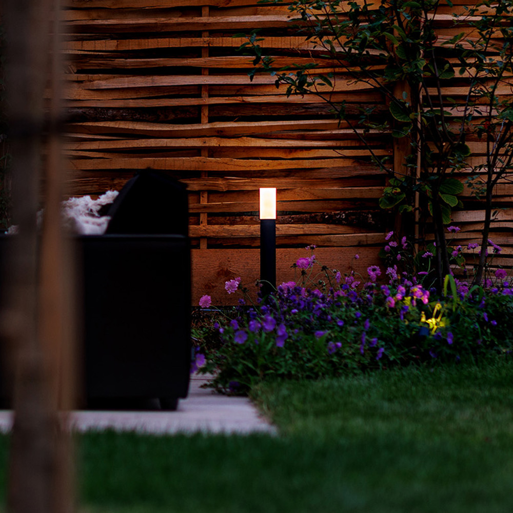 - Sécurité et ambiance dans le jardin grâce aux luminaires sur pied.
