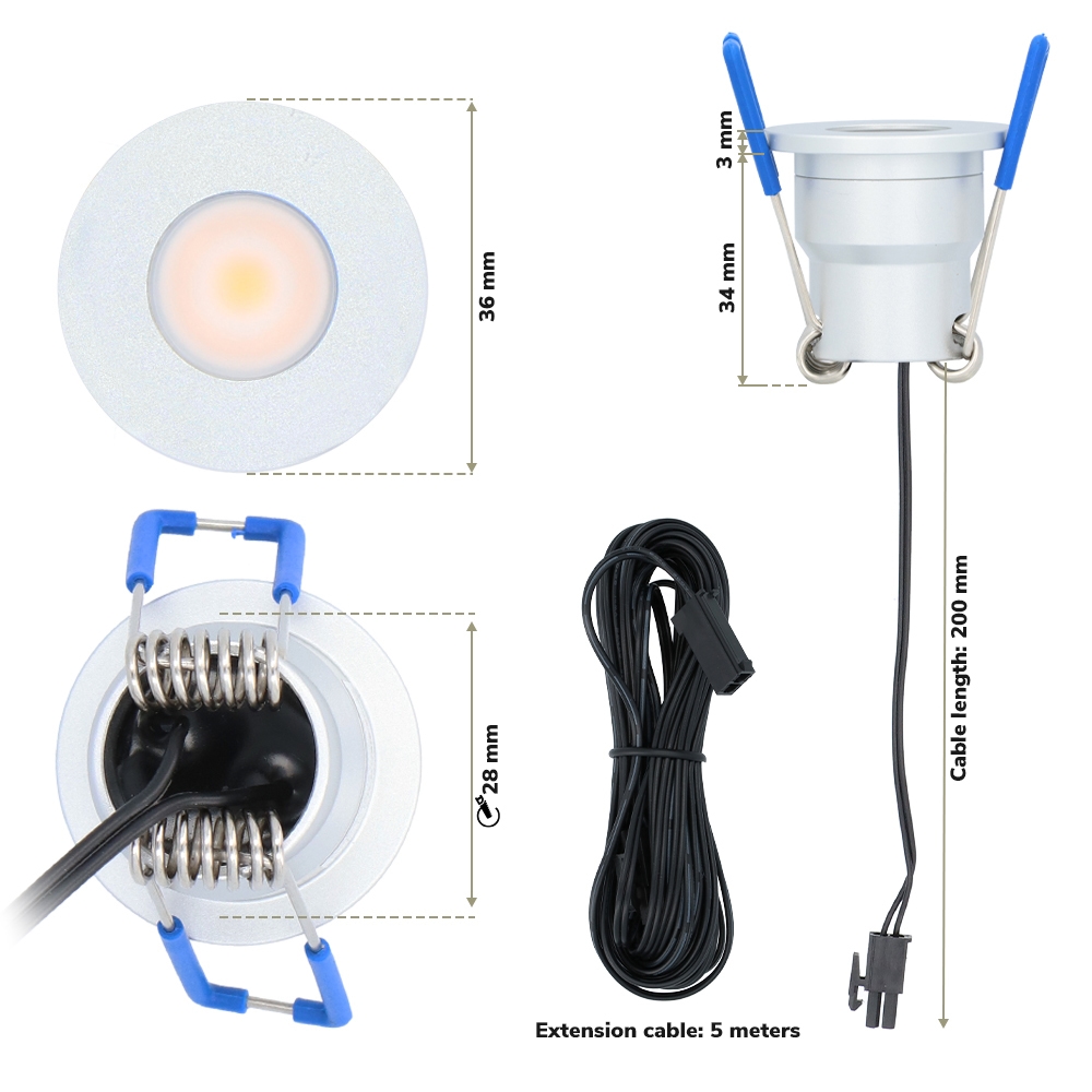 De Milano is een RVS, ronde, SMART mini inbouwspot geschikt voor veranda, overkapping en andere vochtige ruimtes. De Milano heeft een ingebouwde 12 Volt spot met SMART transformator, verdeler en 5 meter kabel aan iedere spot. Bij deze set ontvang je een transformator die 230 V omzet in 12 V. Deze transformator kun je direct op het lichtnet aansluiten, de spotjes sluit je vervolgens aan op de transformator. De spots hebben een 2700K warm witte lichtkleur.