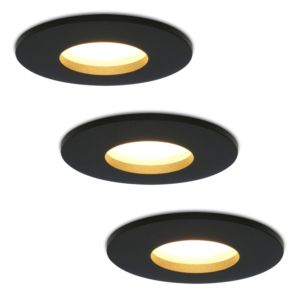 Set van 3 Porto - LED Inbouwspots - 4 Watt 345 lumen - 2700K Warm wit - GU10 - Dimbaar - Rond - IP44 voor badkamer, buiten en binnen - Zwart