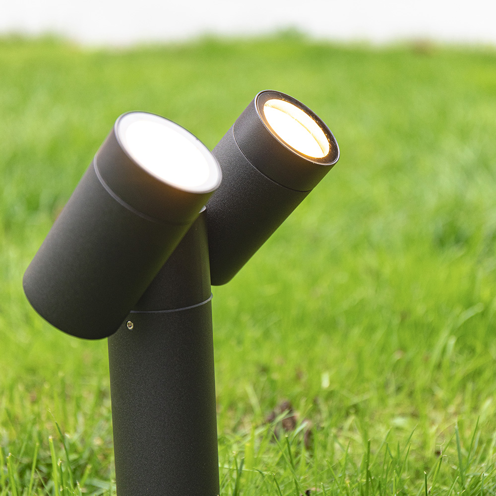 De twee spots van deze prikspot zijn onafhankelijk van elkaar tot wel 317 graden kantelbaar. Hierdoor kun je bijvoorbeeld 1 spot gebruiken om je tuinpad te verlichten en één spot om een boom uit te lichten. De Pinero schijnt een sfeervol warm wit licht van 2700 graden kelvin. De pinero verbruikt slechts 10 Watt en produceert hiermee 690 lumen aan licht. De prikspot heeft een stralingshoek van 38 graden. Door deze smalle lichtbundel is het aanbrengen van lichtaccenten zeer eenvoudig.